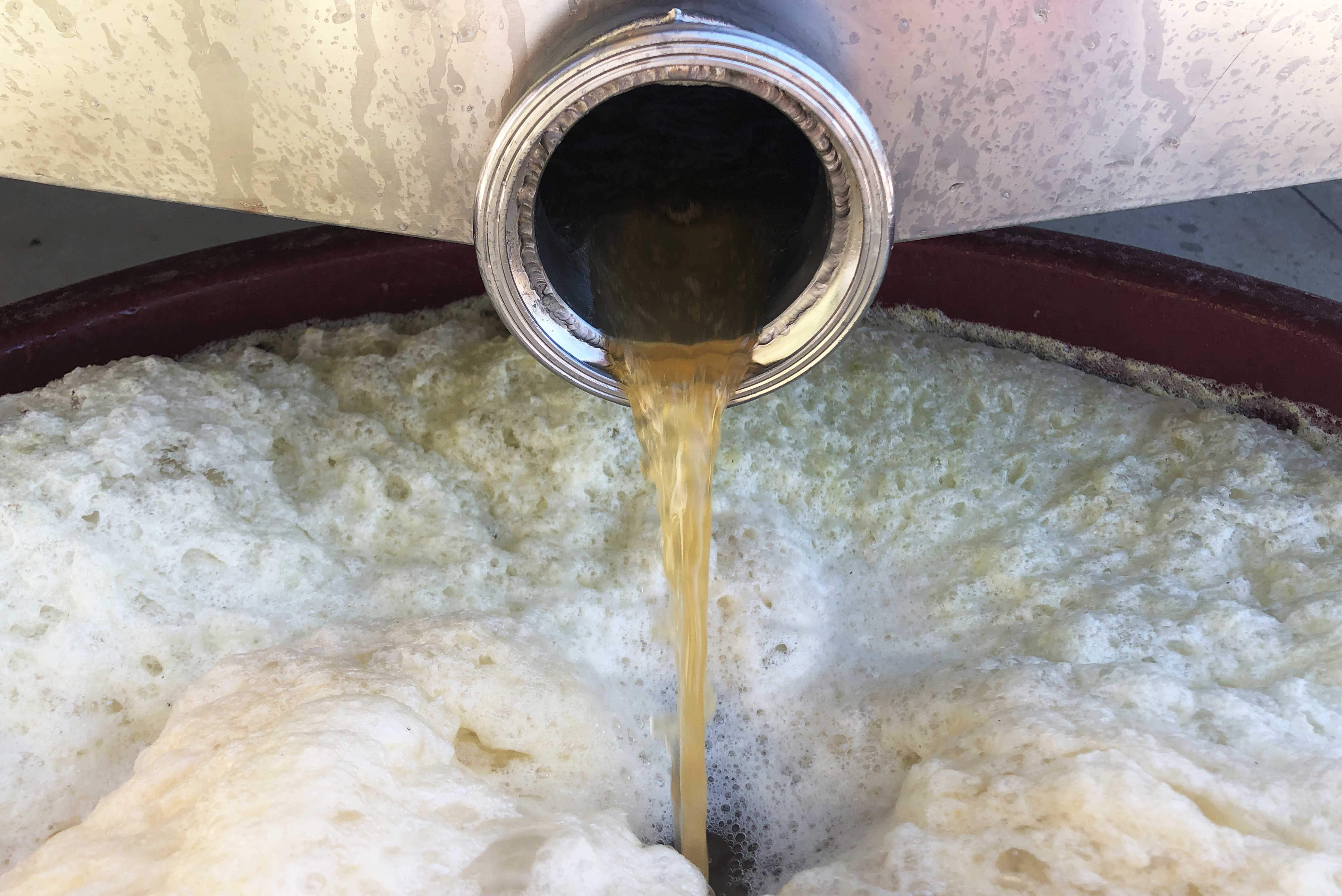 Dobbiamo ricordarci che il nostro mosto ha subito un significativo raffreddamento, quindi in questo momento del processo si trova a una temperatura di cura 8°C / 9°C. La massa iniziale di lieviti che viene predisposta per l’inoculo (il cosiddetto piede) ha invece una temperatura di 37°C, ottimale per la moltiplicazione di questi straordinari, ma molto delicati, micro-organismi. Per evitare che i lieviti subiscano uno shock termico letteralmente fatale, bisognerà quindi acclimatare il nostro piede procedendo a decrementi progressivi della sua temperatura secondo uno schema preciso: 4°C ogni 20 minuti. Questo è possibile prelevando piccole quantità di mosto dalla vasca per aggiungerle al piede, ed è un’operazione per la quale sono necessarie diverse ore durante le quali l’attenzione deve rimanere altissima! Al termine del procedimento la massa di lieviti avrà pressoché decuplicato il proprio volume, regolato la propria temperatura, ma si sarà anche sufficientemente sviluppato da prendere la prevalenza su qualsiasi altro lievito indigeno all’interno del nostro mosto.